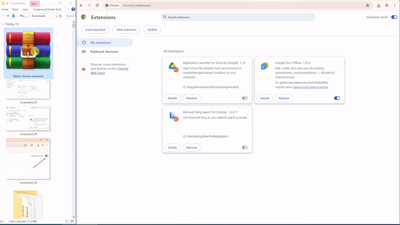 D. **Kéo và thả** file vừa tải vào giữa như ảnh phía dưới (Hoặc có thể giải nén file vừa tải, click chọn Tải tiện ích đã giải nén -> chọn file đã giải nén). Lưu ý: Khi cài bạn có thể sẽ thấy tiện ích báo <mark style="color:red;">lỗi màu đỏ</mark>, bạn **không cần quan tâm** lỗi này mà hãy thực hiện bước tiếp theo.